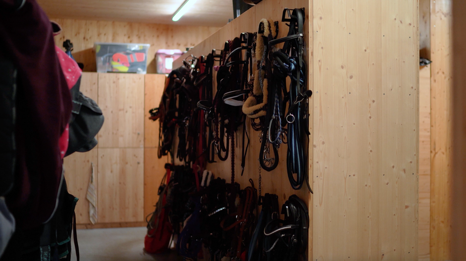 Wir haben einen Getränke- und einen Snackautomaten, verschiedene Reiterstübli, eine beheizte Umkleide und mehrere grosszügige Sattelkammern.